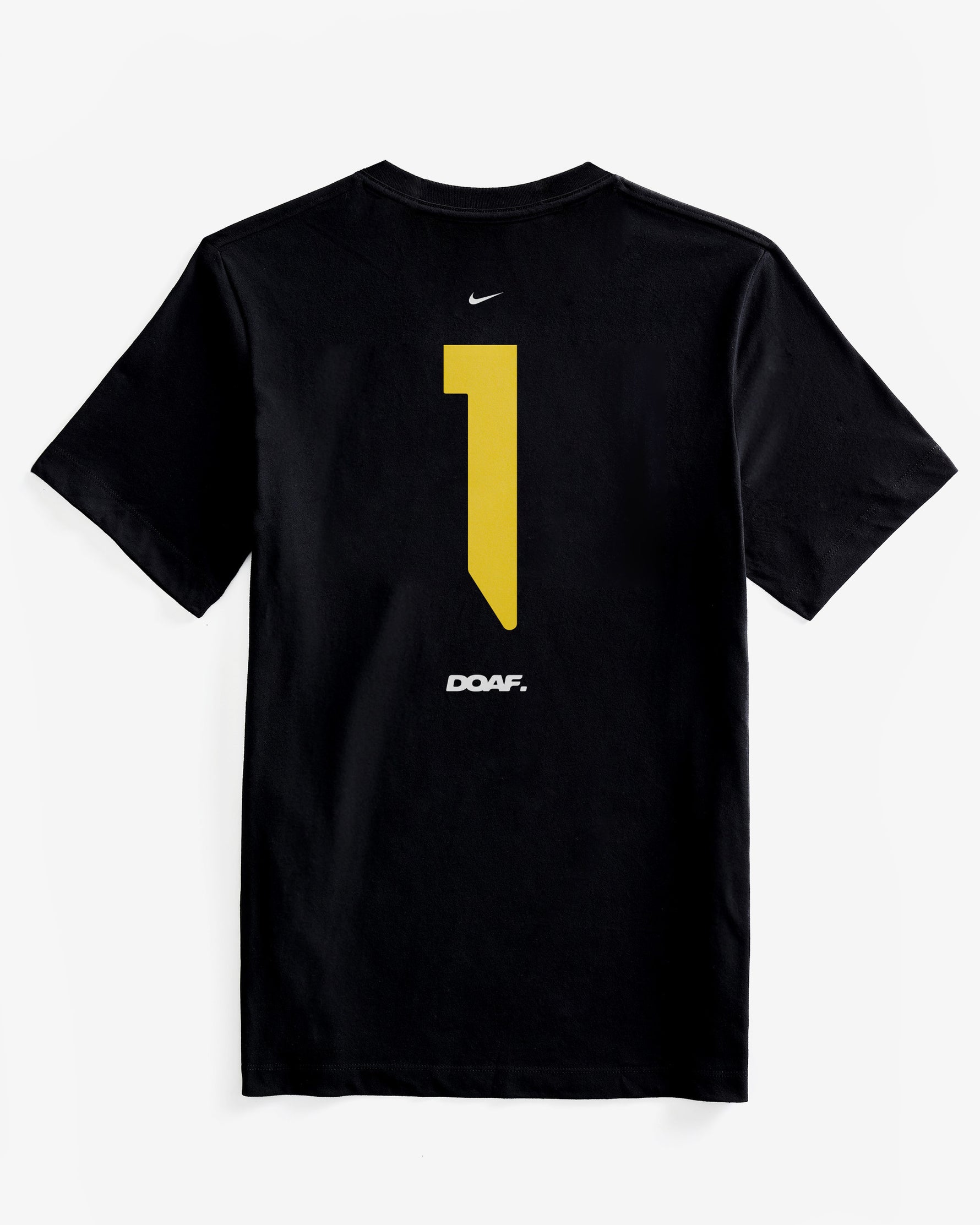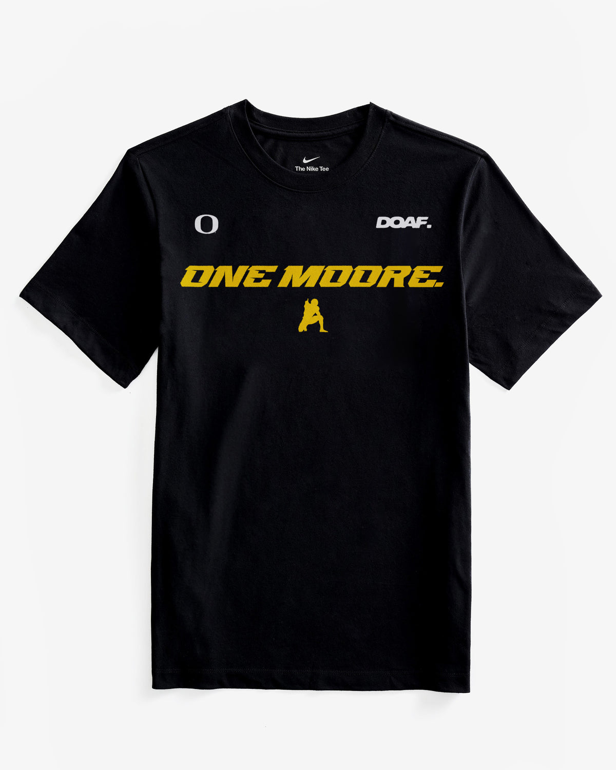 The DOAF One Moore Tee is inspired by the idea of pushing past what's expected and staying locked in when it counts. Designed with an outlined silhouette of Dakorien Moore and his uniform number, this Dri Fit Cotton tee is soft, breathable, and broken-in from the first wear.