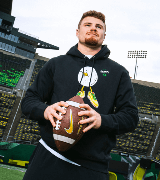 The DOAF Sneaker Tee celebrates the spirit of Oregon with a bold graphic of colorful sneakers soaring, surrounded by clouds and feathers. The tee features iconic DOAF sneakers - where speed, innovation, and bold style take flight. Made with premium Dri-Fit cotton for that perfect blend of softness and performance, the DOAF Sneaker Tee keeps you cool whether you’re cheering from Autzen or chasing the horizon.
